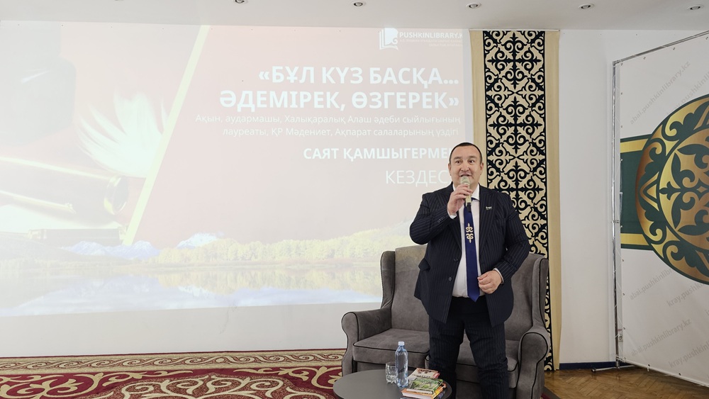 8 октября в Восточно-Казахстанской областной библиотеке имени А.С. Пушкина состоялся творческий вечер с поэтом и переводчиком Саятом Камшыгером под названием «Бұл күз басқа... әдемірек, өзгерек».