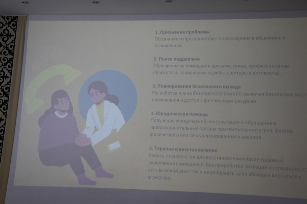 Шараға қатысушыларға саламатты қарым-қатынас қалыптастыру, эмоционалдық қауіпсіздік, құқықтық сауаттылық және отбасындағы өзара түсіністі арттыру бойынша кеңестер берілді. Тренингке келген нәзікжандылар Назигүл Абылқасқызының тәжірибесіне негізделген кәсіби кеңестерден үлкен мотивация алды.
