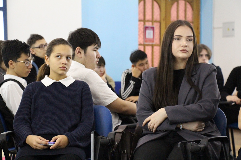 Психолог Марина Давыдовамен бірге балалар күрделі, бірақ өте өзекті тақырыптарды қозғады: ауыртпалық, қорқыныш, әділетсіздік және үндемей қалмай, бей-жай қарамаудың қаншалықты маңызды екендігі туралы сөз қозғалды. Оқушылар жай тыңдап қана қоймай, ойланды, пікірлерімен бөлісті, сұрақтар қойды және кейде айту қиын болатын мәселелерді батыл талқылады. Залда сенім, қолдау және түсіністік атмосферасы орнады.