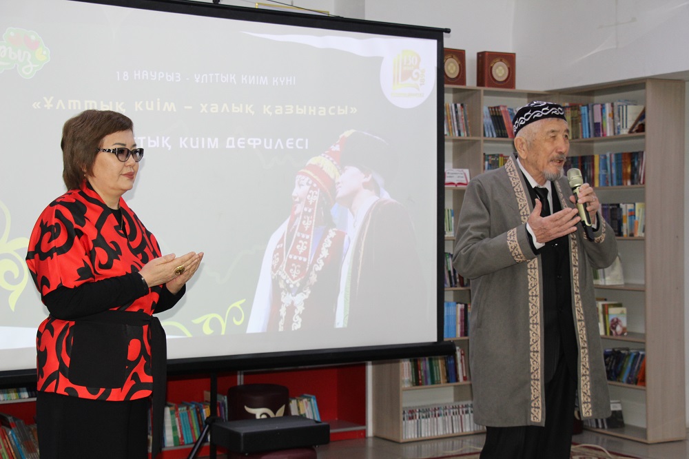 18 наурыз күні кітапханада Ұлыстың ұлы күні – Наурыз мерекесіне арналған «Наурызнама» онкүндігі аясында ұлттық киім дефилесі өтті.